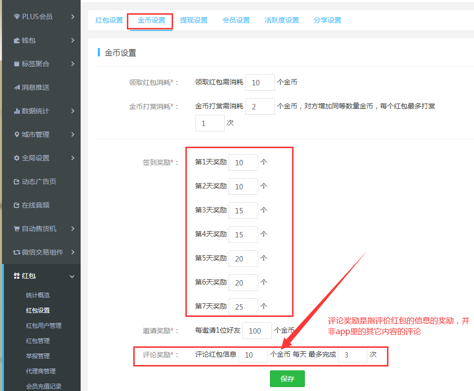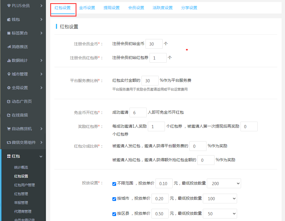 2.紅包設置:紅包基礎設置需要按經營需求設置完善