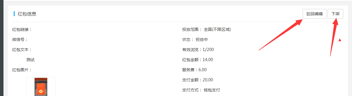 4.紅包管理:用戶發布的紅包內容,如里有違規或不符合要求的針對進行下架以及駁回編輯 。