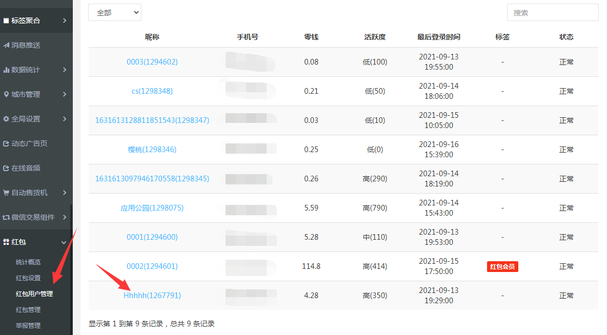 3.活躍度:用戶活躍程度,按照隱藏分數設定低中高3個等級,等級影響開紅包金額算法