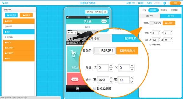 在“控件屬性”——“控件樣式”中,可以修改該控件的背景色,及大小。