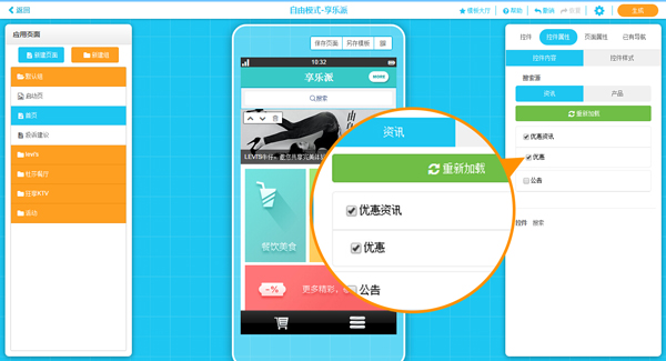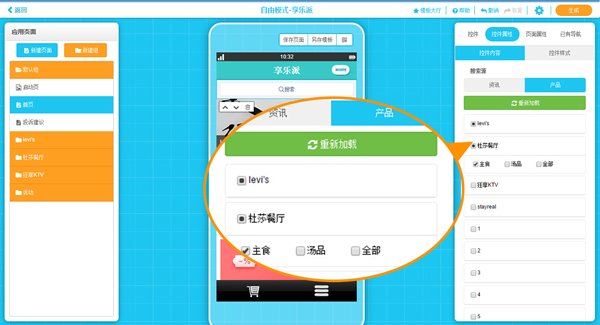 在“控件屬性”——“控件內容”中,勾選需要通過該搜索控件可以搜索的范圍。可以同時通選資訊及產品。(一個頁面僅支持添加一個搜索控件。)