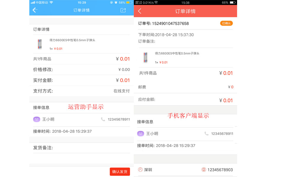 3.搶單后運營管理平臺/應用運營助手/用戶客戶端的訂單頁面均會顯示訂單配送員信息,讓商戶或買家更加方便聯系配送員。