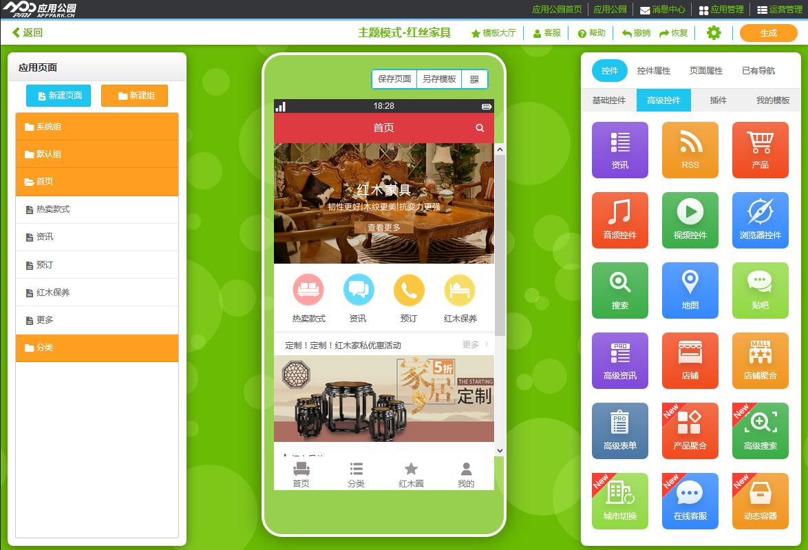 目前家具類的APP已經不需要重新編程的開發,應用公園APP在線制作平臺,已經有上百個垂直行業的整套原生APP模板可以直接使用。這樣的模式,可以讓資金成本節省90%左右。