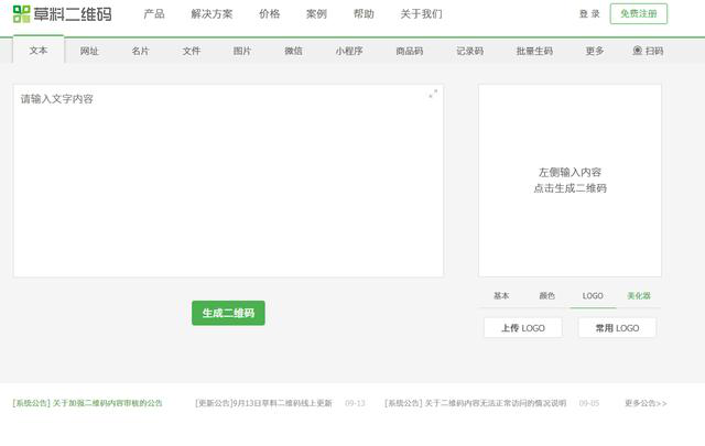 草料二維碼,無論是文本、網址、名片、文件、圖片等,都可以通過這個網站,一鍵生成二維碼,還有很多不錯的免費模板可以直接使用,還可以對二維碼進行美化處理。