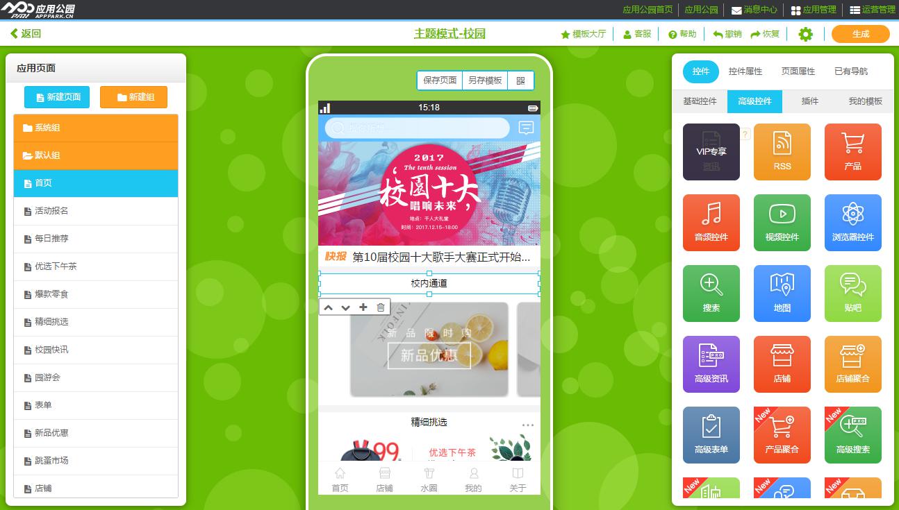 大學時,我學習的專業是中文,想開發一個校園類的APP,把學校的社團、商家、兼職、家教整合起來,順便可以共享課程表等。然后去請教計科學校的同學,結果當然被拒,但是給我推薦了一個平臺:應用公園APP在線制作平臺。零基礎也能制作APP軟件,兼容iOS,完全不需要自己敲代碼。